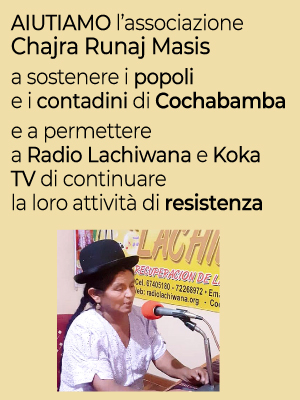 “Grazie mille a tutte le amiche e amici del ForumAlternativo. Grazie al vostro contributo abbiamo il primo importante mattone per poter offrire alla radio alternativa Lachiwana e a Koka TV gli ambienti necessari per poter svolgere il loro importantissimo lavoro di informazione.”