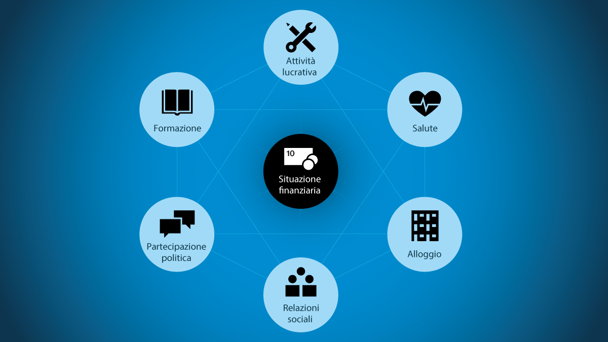 È ormai chiaro, da anni, che la definizione di povertà non può far riferimento solo al denaro disponibile per una persona o per una famiglia. Il concetto è multidimensionale: “una persona è considerata povera se il reddito dell’economia domestica in cui vive, dopo aver considerato tutte le entrate (compresi i trasferimenti e le prestazioni sociali), è inferiore al minimo vitale sociale. Oltre alle condizioni finanziarie, che costituiscono il fulcro della definizione di povertà, vengono considerati anche altri sei ambiti fondamentali della vita: formazione, attività lucrativa, salute, alloggio, relazioni sociali e partecipazione politica”.